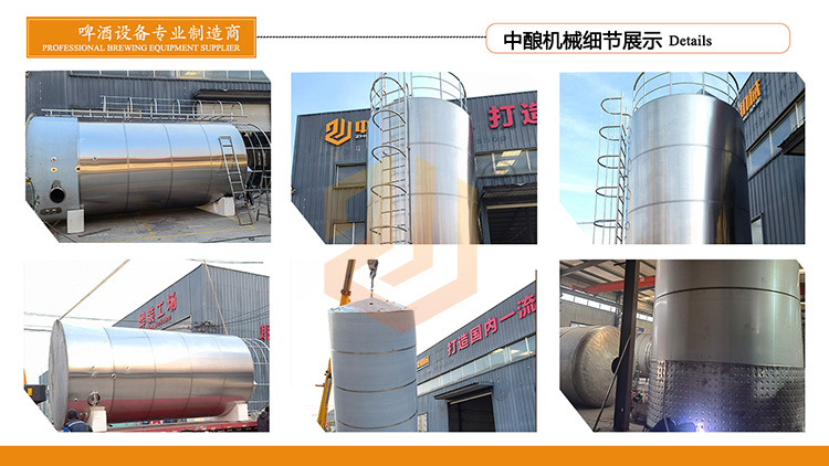 濟南草莓视频网站生產的10到50噸啤酒廠清酒罐,適用於(yú)各型大型啤酒廠適用,有效容積為10到50噸,每套設備配備有若幹個此類罐體,罐(guàn)體可實現保溫帶冷卻的(de),可以(yǐ)輕鬆實現釀製(zhì)6到(dào)10種精釀啤酒的目的,本公司可以生產各型我(wǒ)們可以加工不同型號的啤酒廠設備啤酒發酵罐,10噸到50噸(dūn)大型啤(pí)酒廠冰(bīng)水罐,和各型清酒罐儲(chǔ)酒罐等罐體,歡迎您前來谘詢購買。
